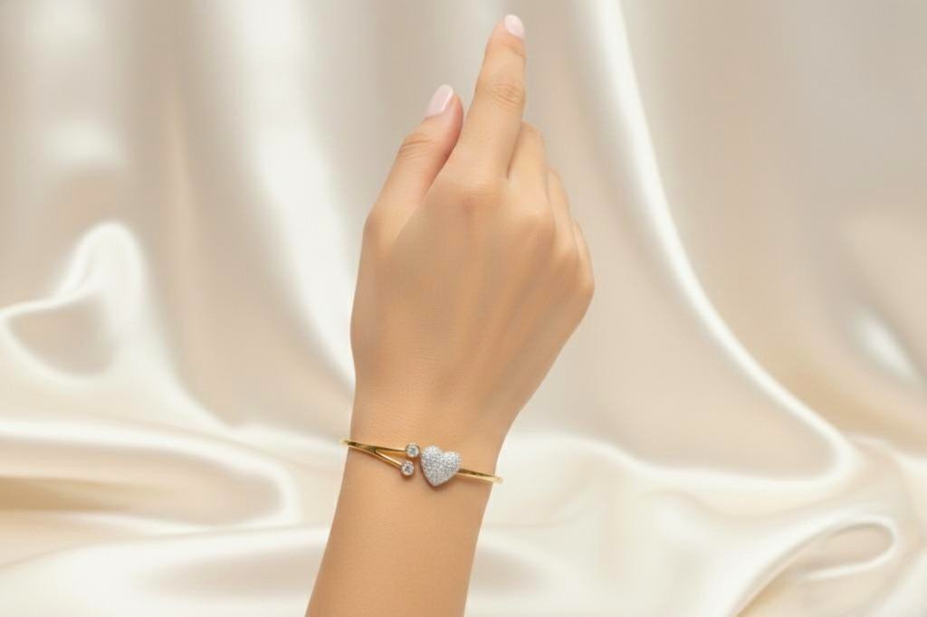 Anti Tarnish Heart Zirconia Bangle Bracelet